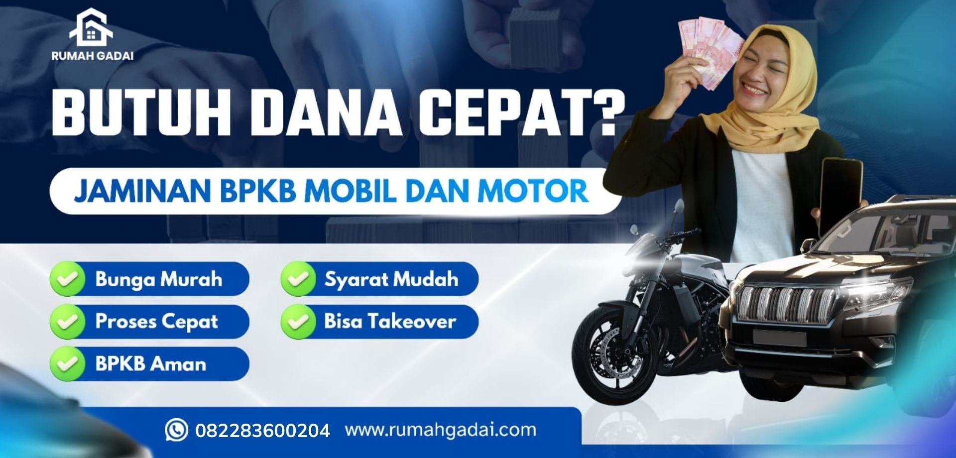 Dapatkan pinjaman cepat dan mudah dengan menjaminkan BPKB mobil Anda. Proses cepat, bunga kompetitif, dan aman untuk kebutuhan finansial Anda.